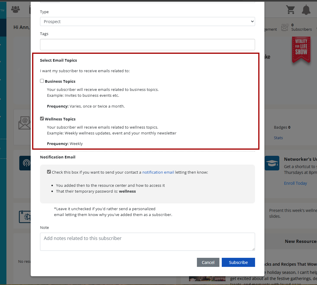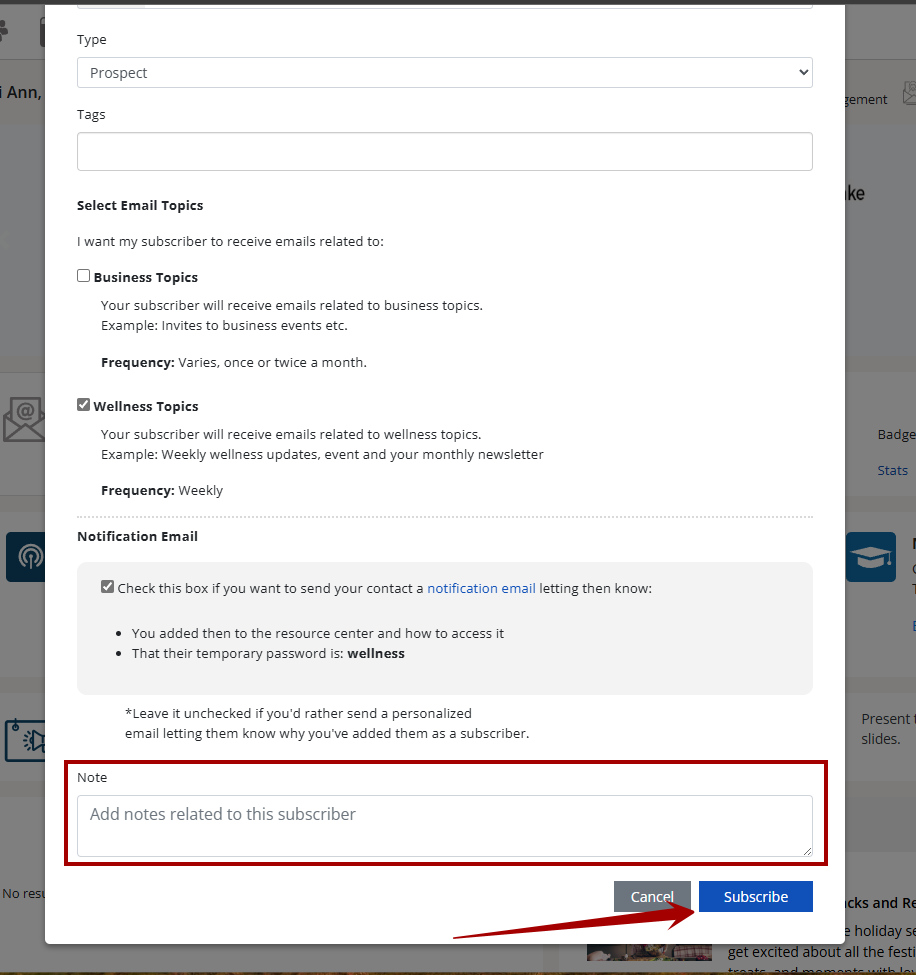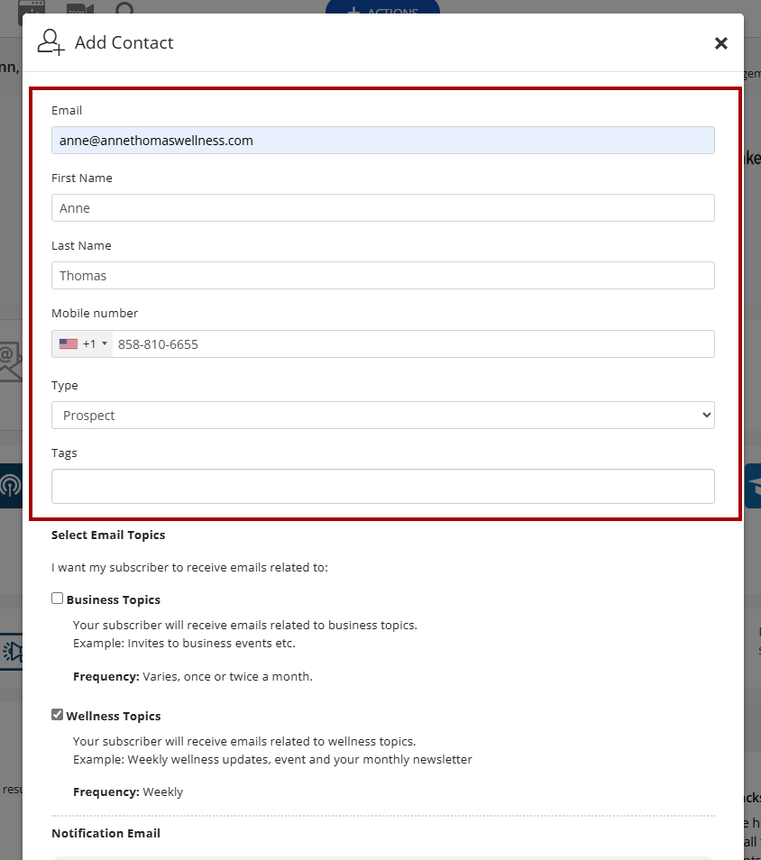 Notification Email checkbox if you want to send your contact a notification email. You can leave it unchecked if you prefer sending a personalized email.